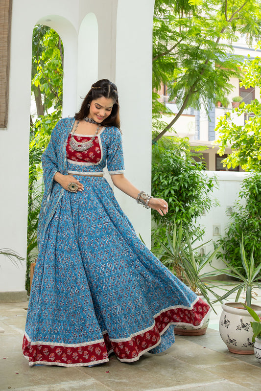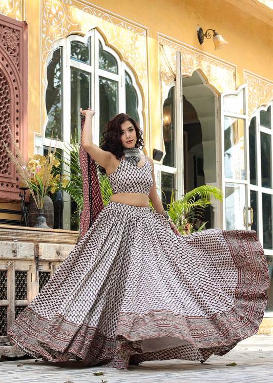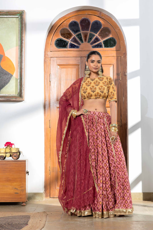 Mihika Handblock Cotton Lehenga