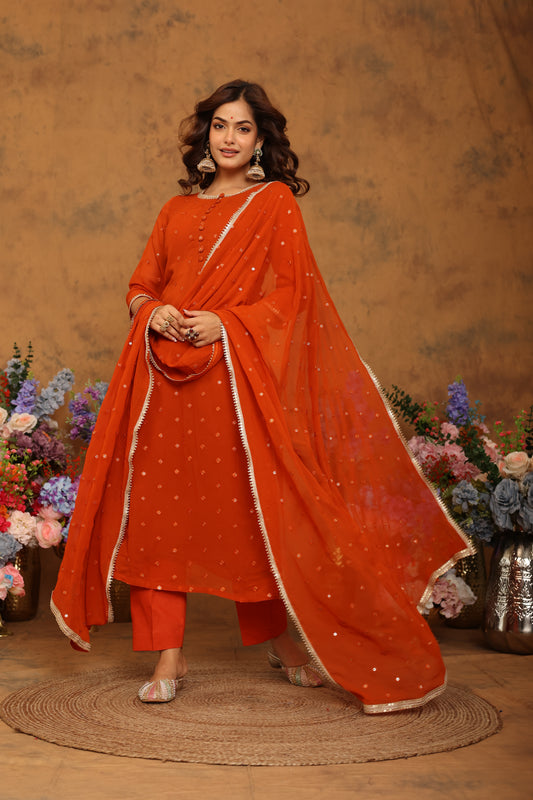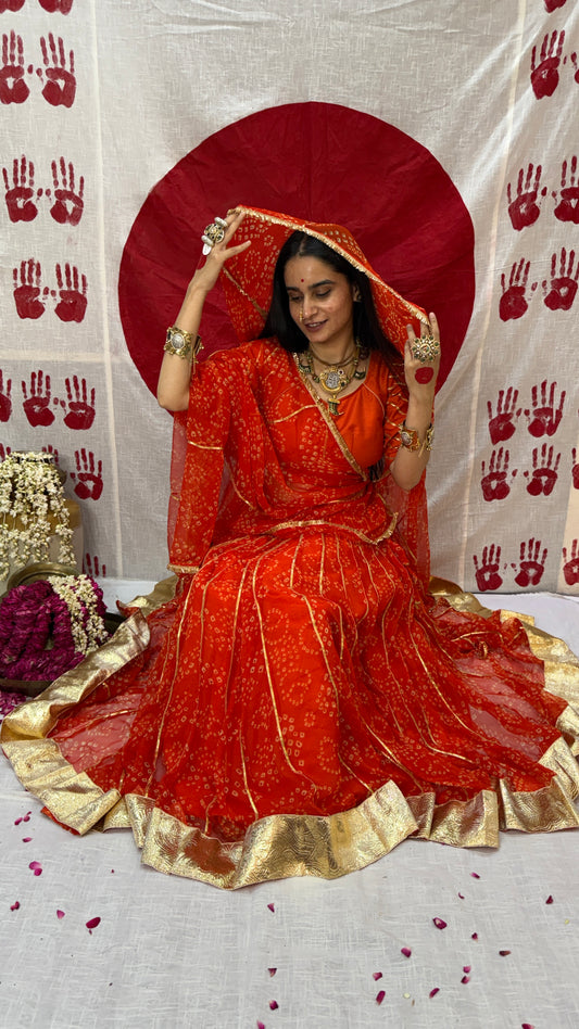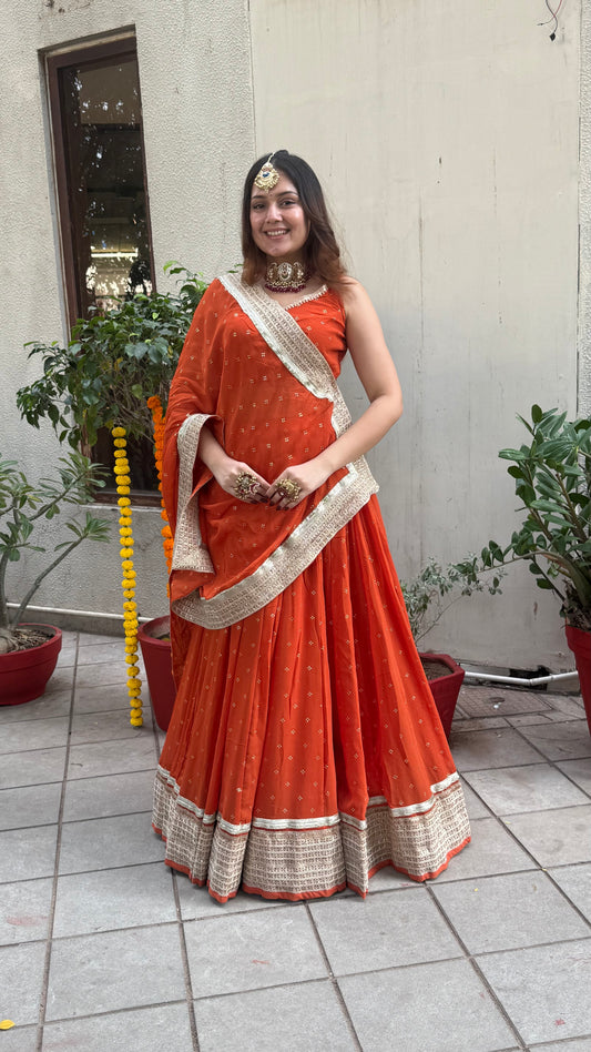 Siddhi Orange Bandhani lehenga