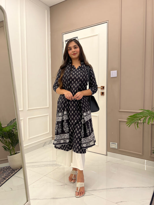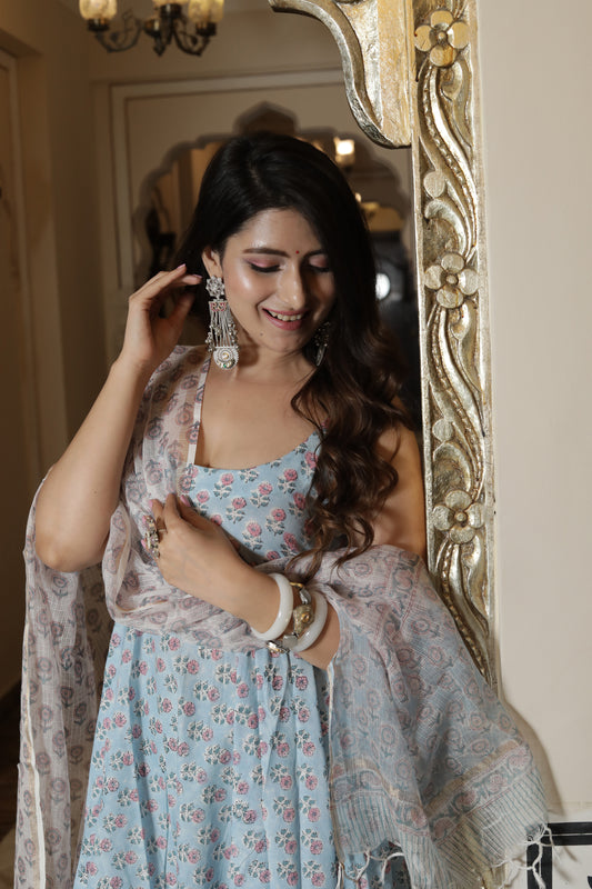Badal Handblock Cotton Anarkali Set