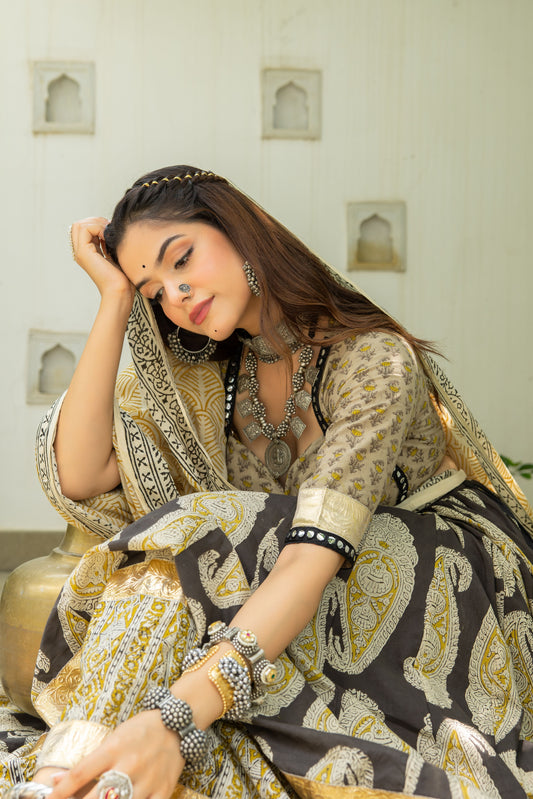 Malti Ajrakh Dabu Lehenga