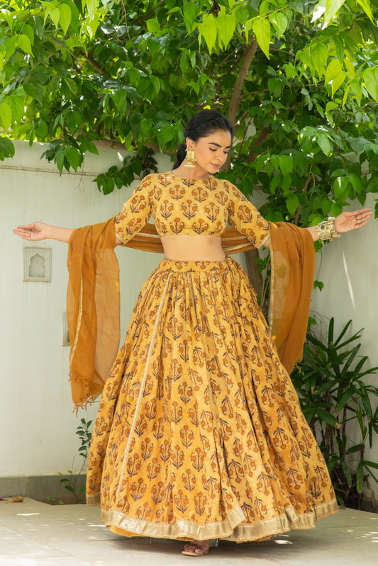 Hetvi Mustard Handblock Lehenga