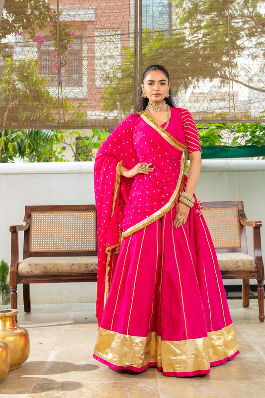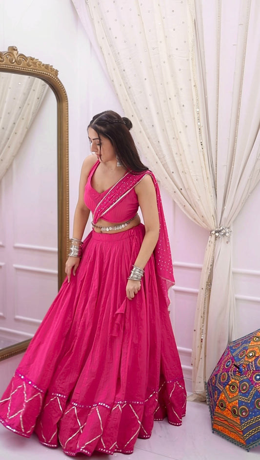 Pink Lurex Cotton Lehenga