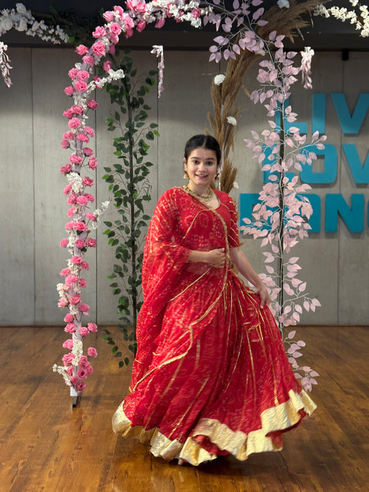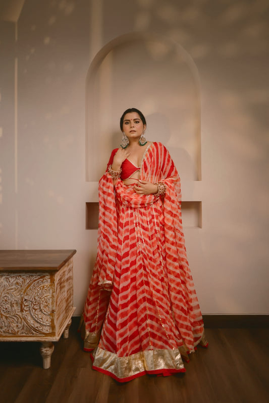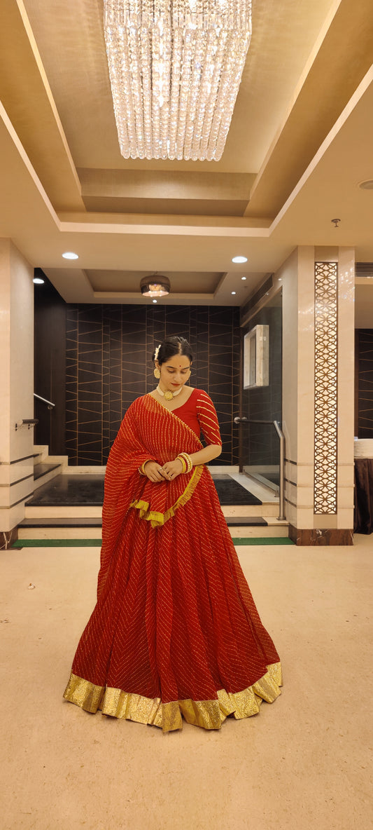 Shloka Red Leheriya Lehenga