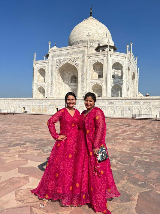 Siddhi Red Bandhani lehenga