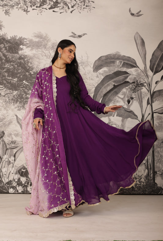 Malhaar Purple Anarkali Set
