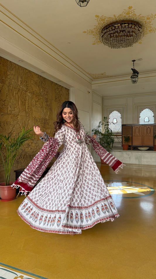 Badal Handblock Cotton Anarkali Set