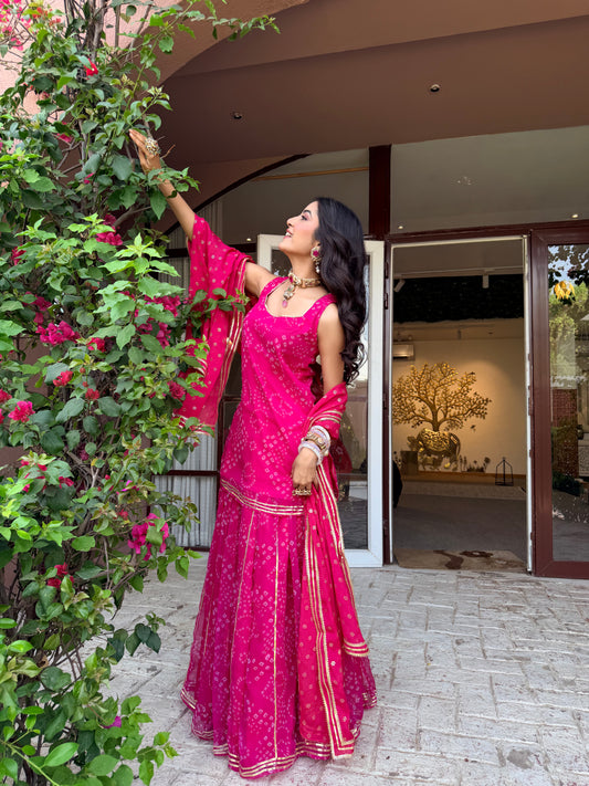 Kumkum Pink Bandhani Sharara Set