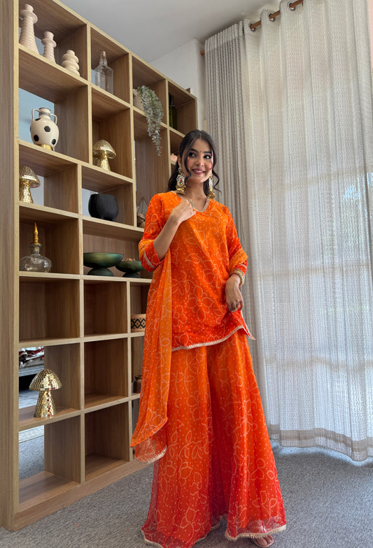 Pranjali Orange Bandhani Kurti Palazzo Set