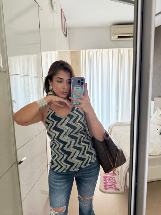Pia Blue Zigzag Cotton Halter Top