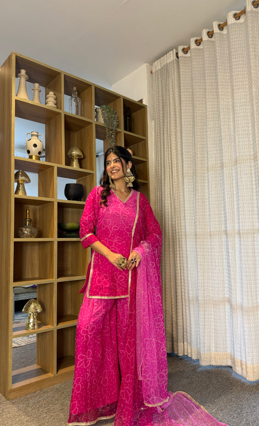Pranjali Pink Bandhani Kurti Palazzo Set