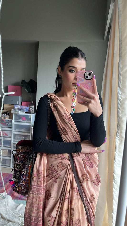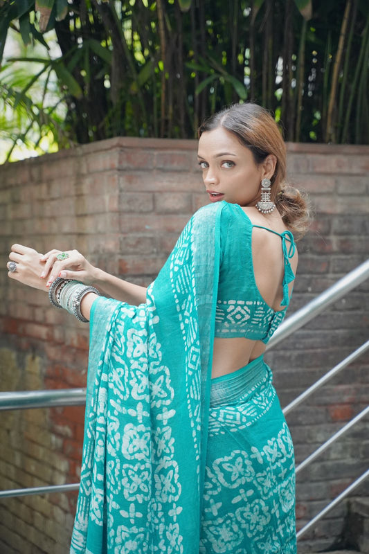 Mulmul Ajrakh Dabu Print Saree (Teerth By Amaanyaa)