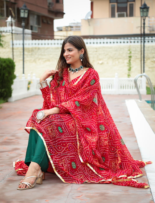 Ganga Red Bandhani Set