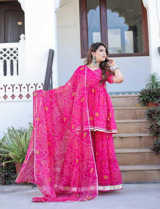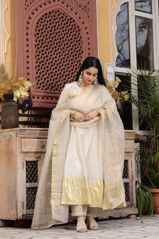 Red Ajrakh Handblock Dola Silk Saree (Teerth By Amaanyaa)