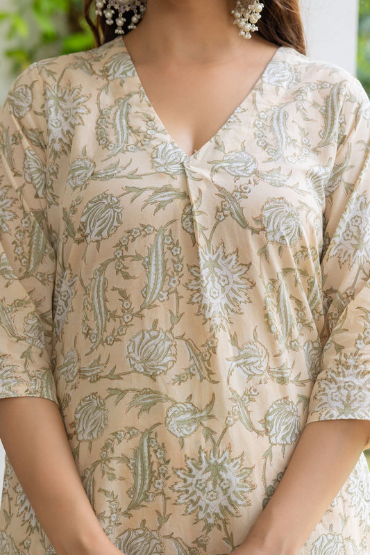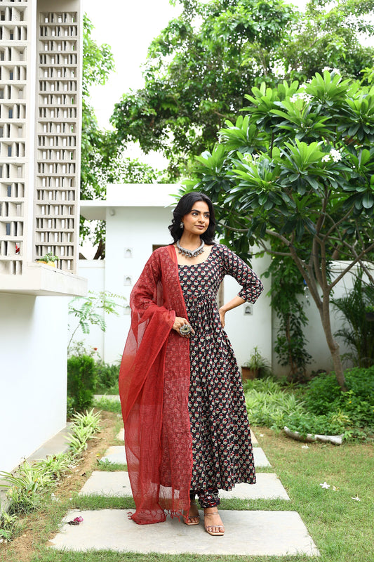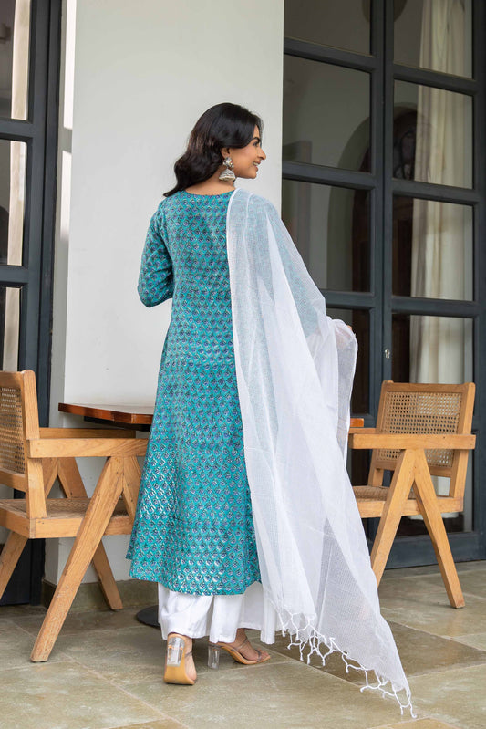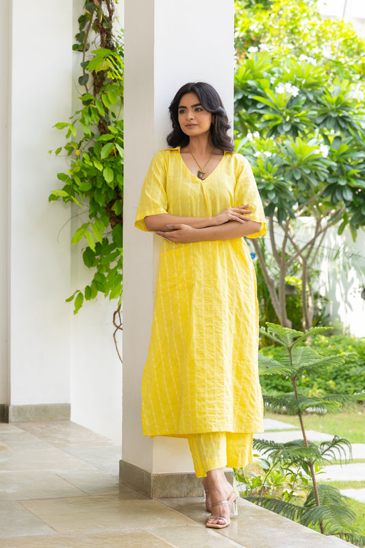 Kimaya Dabu Slub Cotton kali Kurta Set