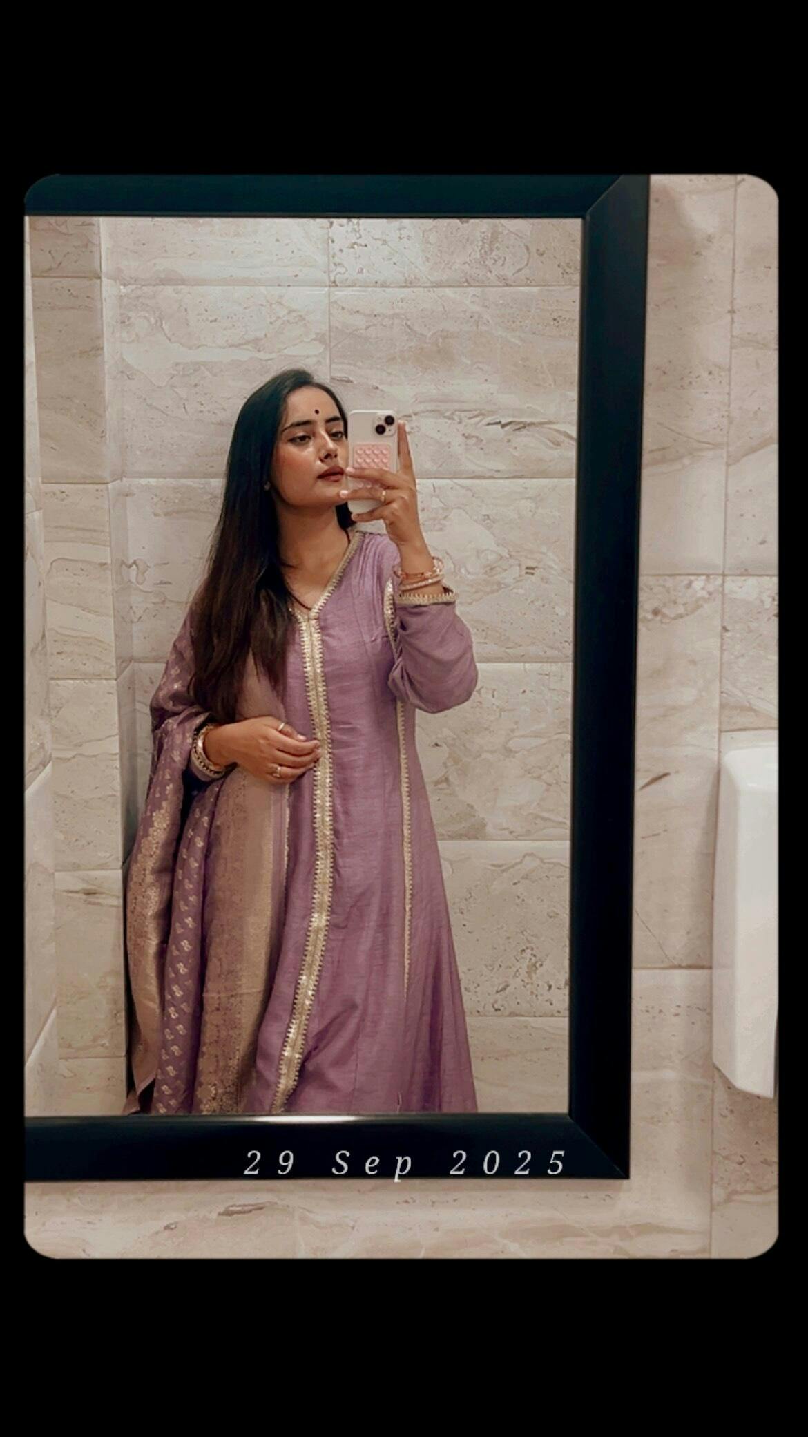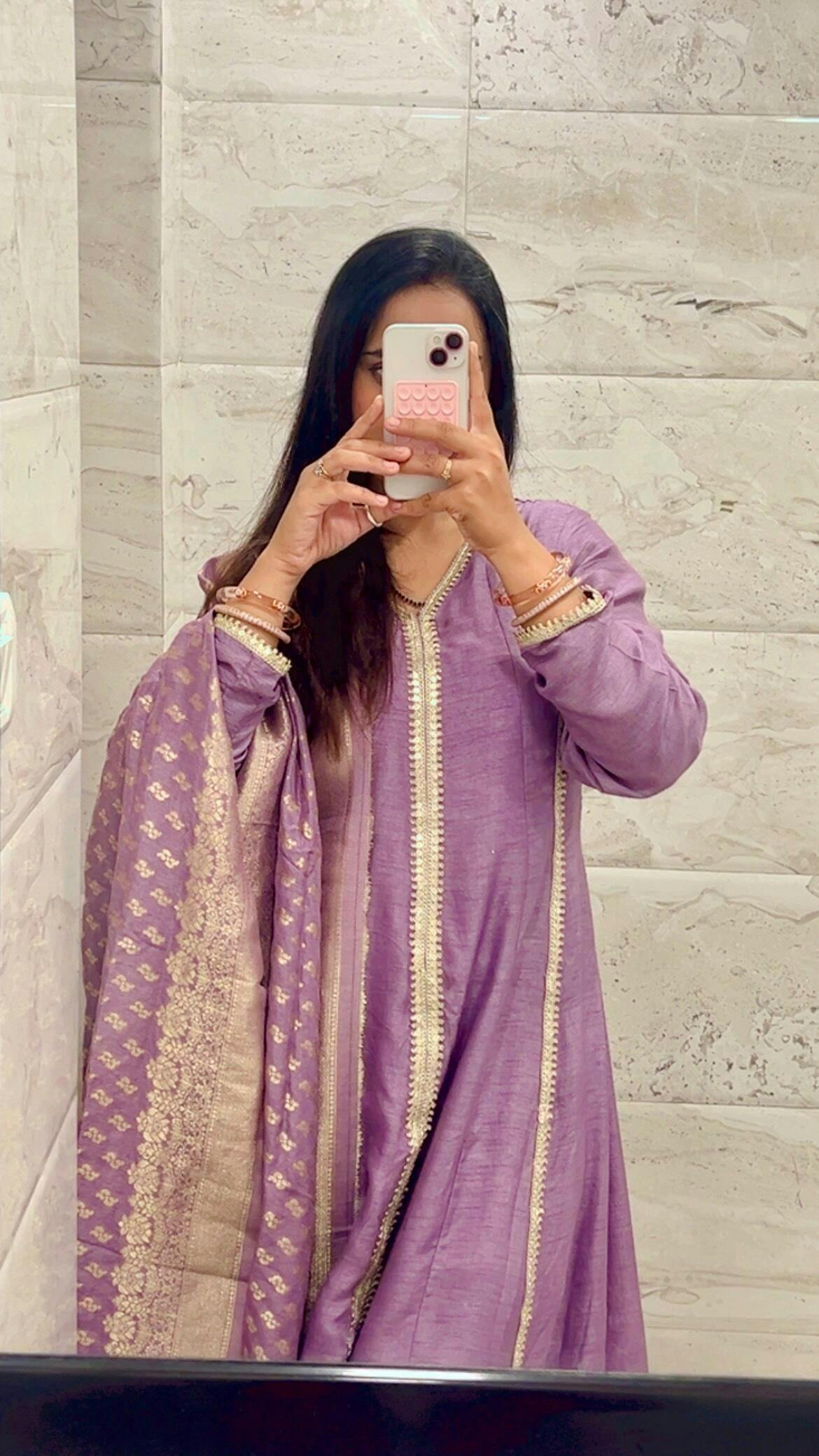 The Manjari Purple Anarkali Set is a stunning statement piece in a rich, regal purple, designed to exude elegance and sophistication. Crafted from a luxurious, flowy fabric, it offers both comfort and a flattering silhouette, perfect for festive gatherings or special occasions. Paired with a matching dupatta, this set captures the essence of timeless grace, making it a standout choice for any celebration.