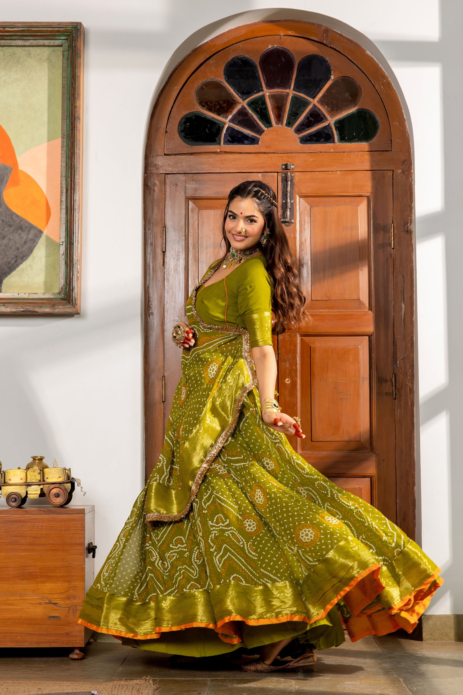 The Falguni Bandhani Lehenga radiates regal elegance with its stunning craftsmanship and intricate details. This exquisite ensemble features a beautifully embroidered lehenga paired with a matching choli and dupatta, each adorned with ornate patterns and luxurious embellishments. Made from high-quality fabric, it offers a perfect blend of comfort and grandeur. Ideal for weddings and festive celebrations, the Falguni Bandhani Lehenga is a statement piece that captures timeless beauty and sophistication.