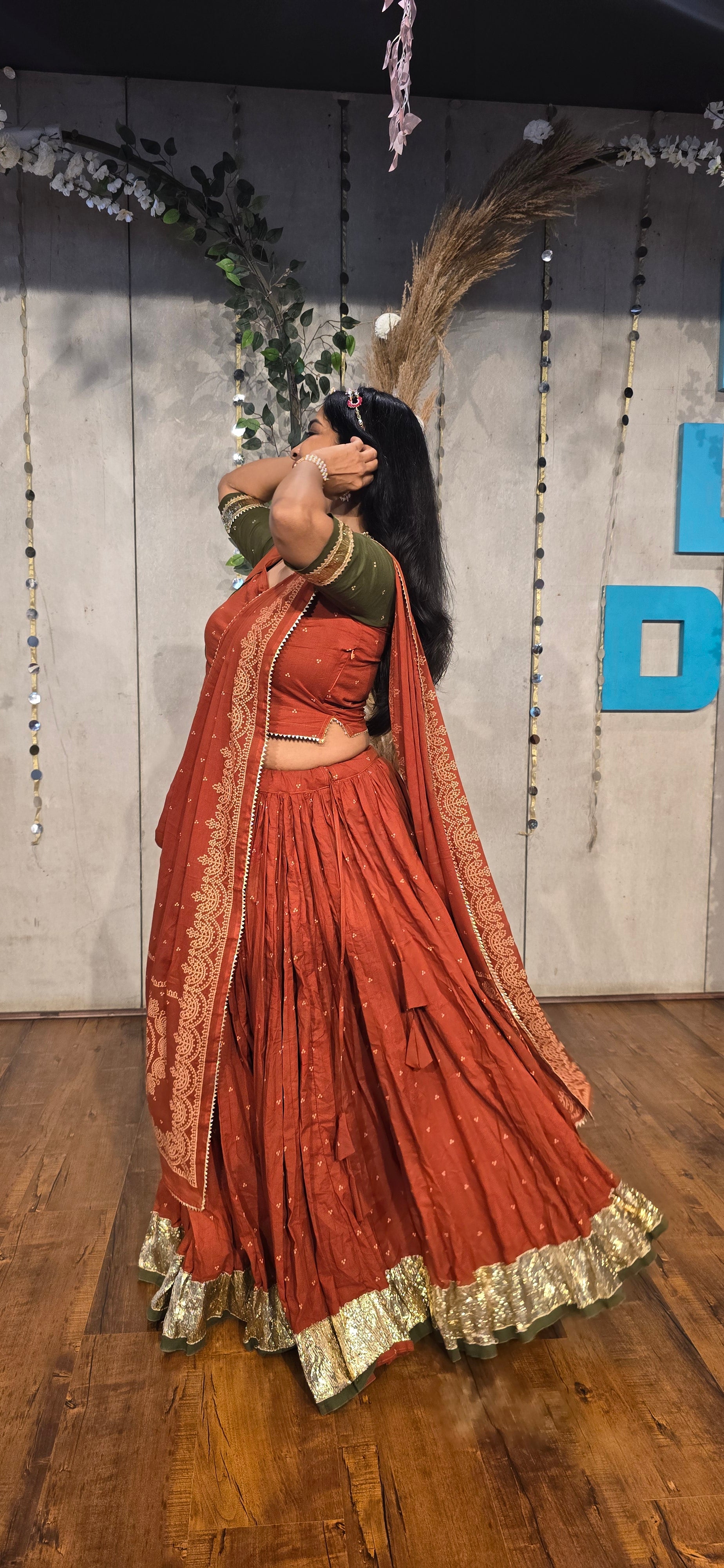Lehenga - Bandhani Printed Cotton with Cotton Lining (Copper Lappa) (Ghera around 14 meters)