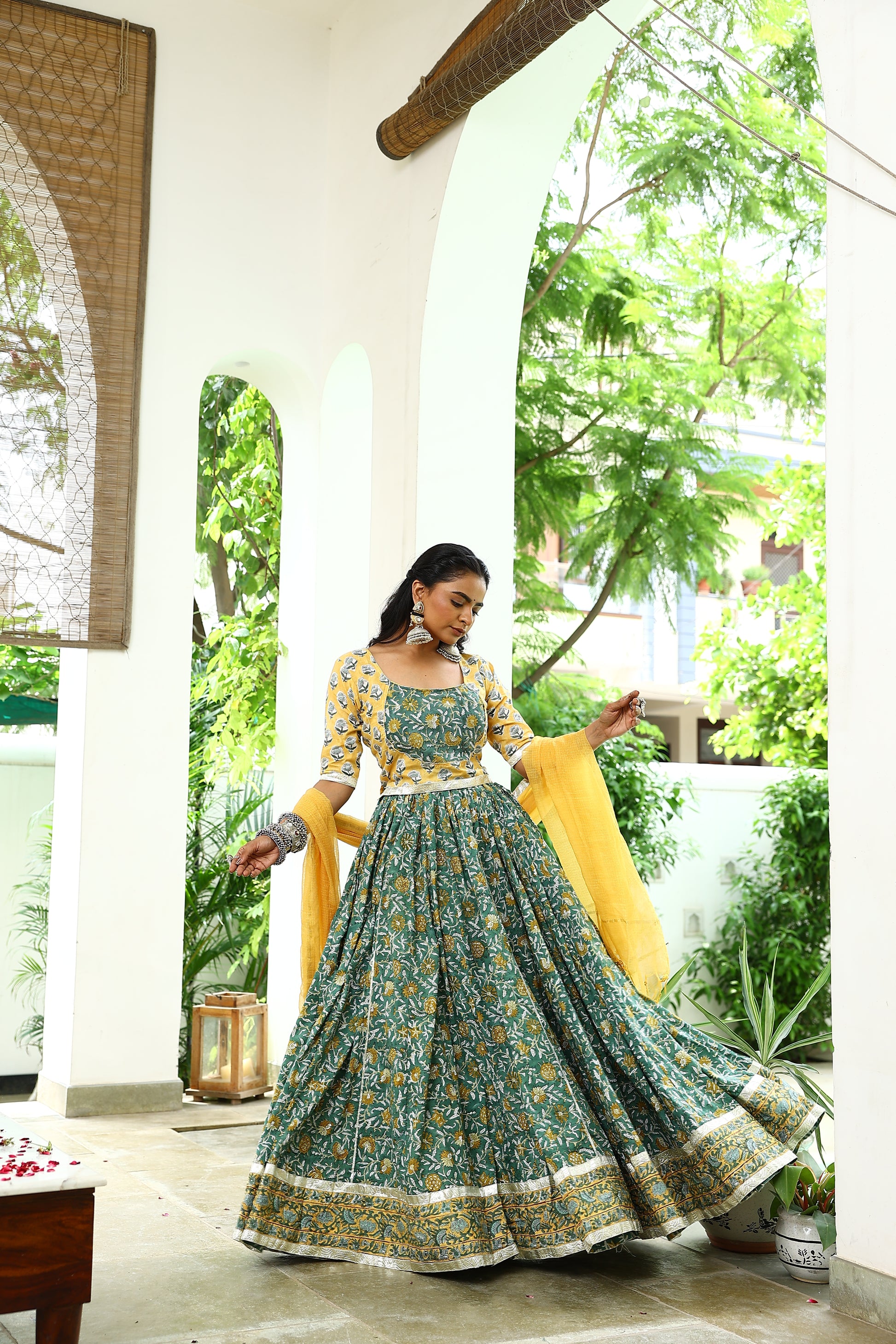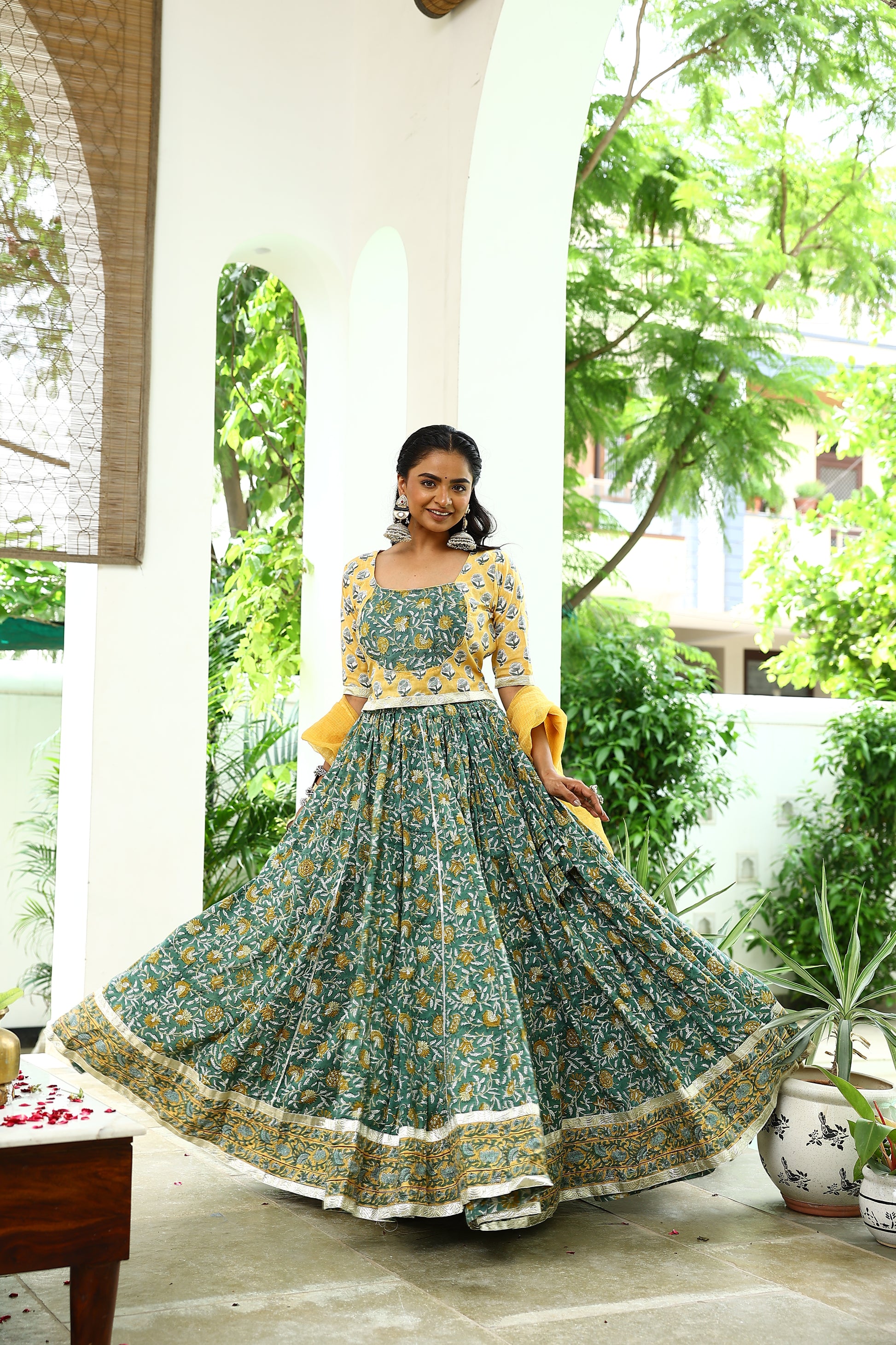 Lehenga - Handblock Printed Cotton with Cotton Lining (Ghera around 12 meters)