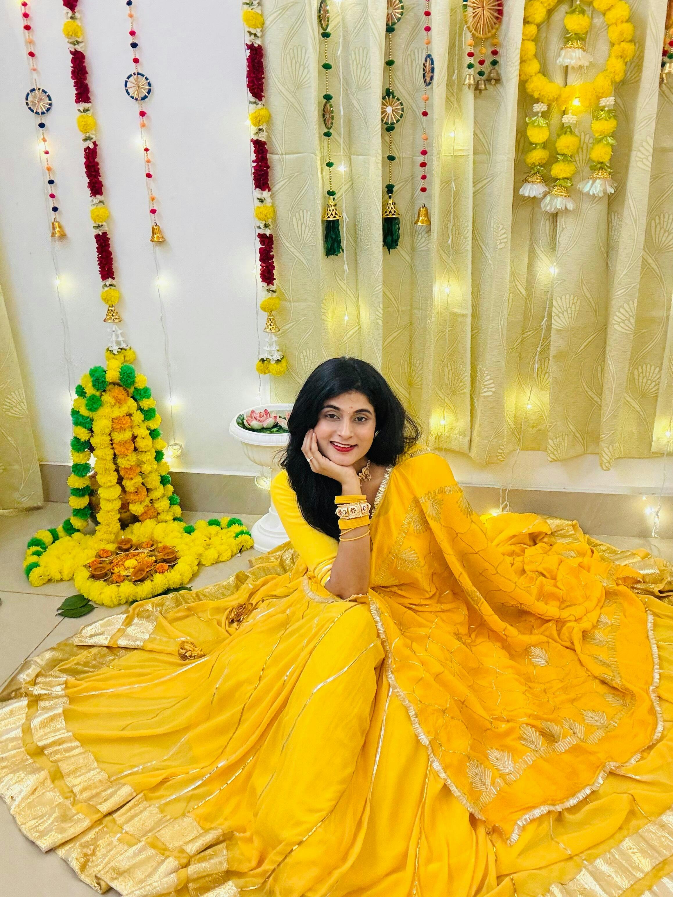 Loved this yellow lehenga! The color is so bright and festive — perfect for daytime functions or haldi ceremonies. The fabric feels premium, and the embroidery work is beautifully detailed. Got so many compliments when I wore it! Totally worth the price and would definitely recommend Amaanyaa for ethnic wear. 💛✨
