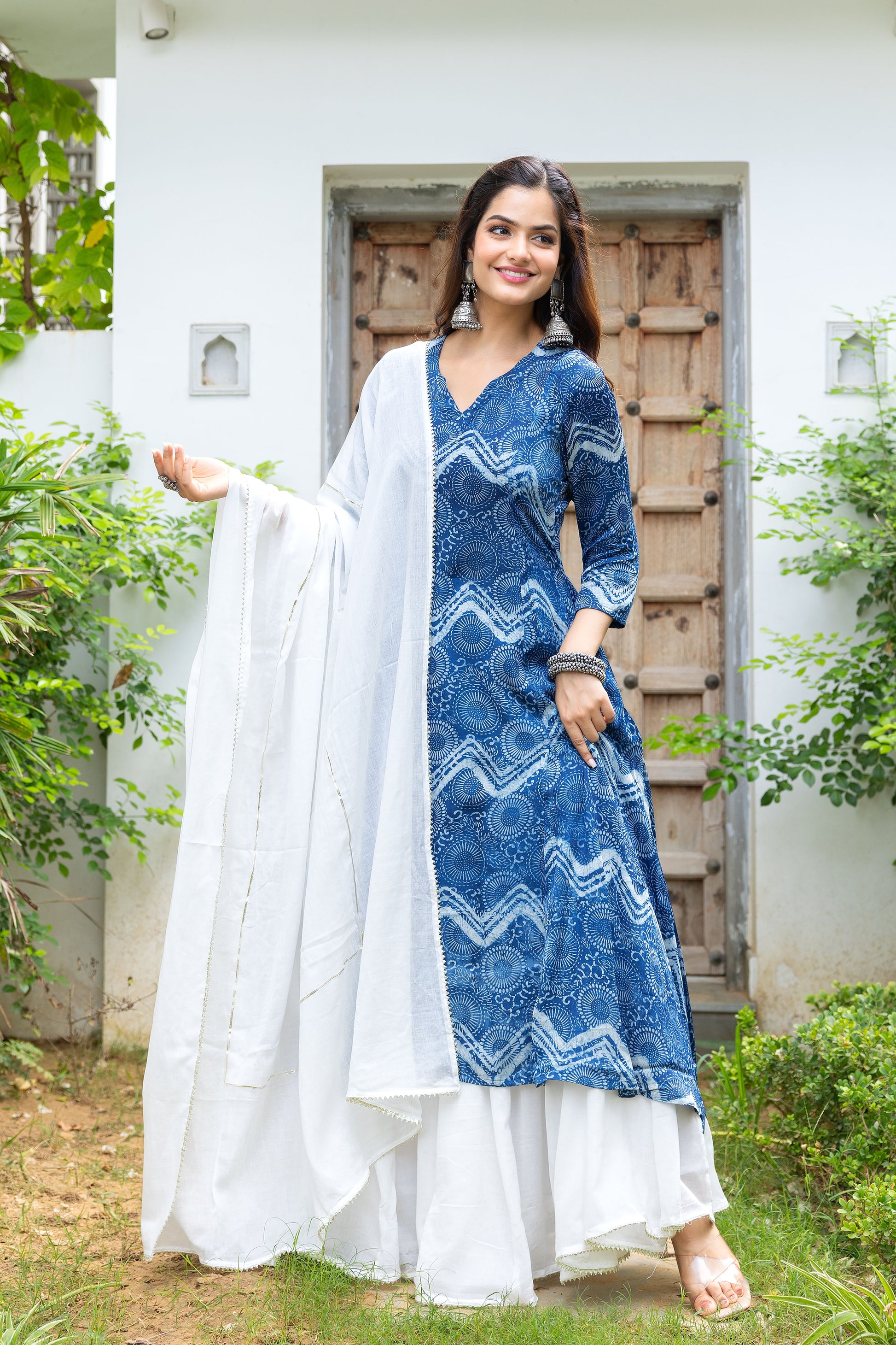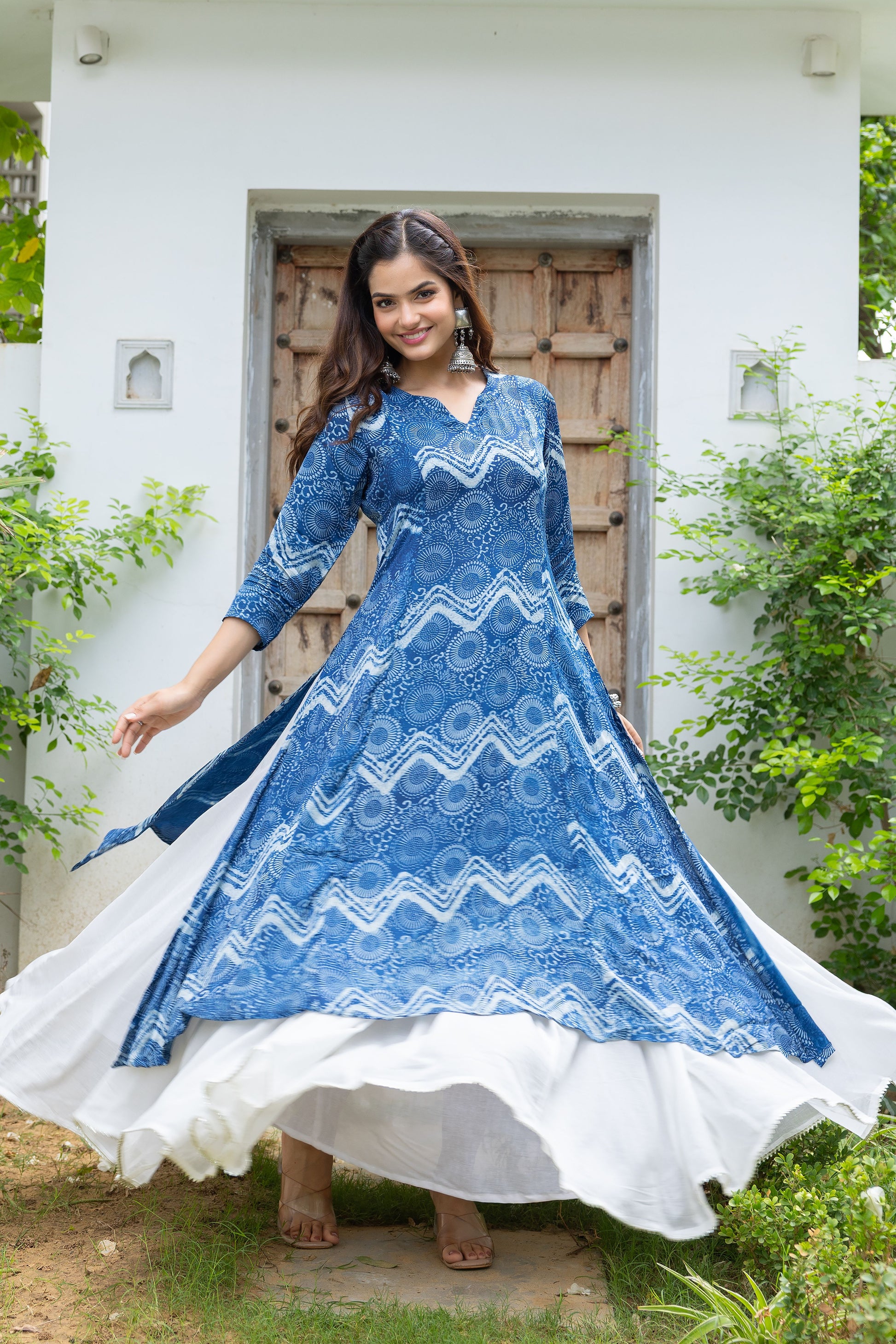 Mirza Indigo Modal Silk Kali Kurta Set